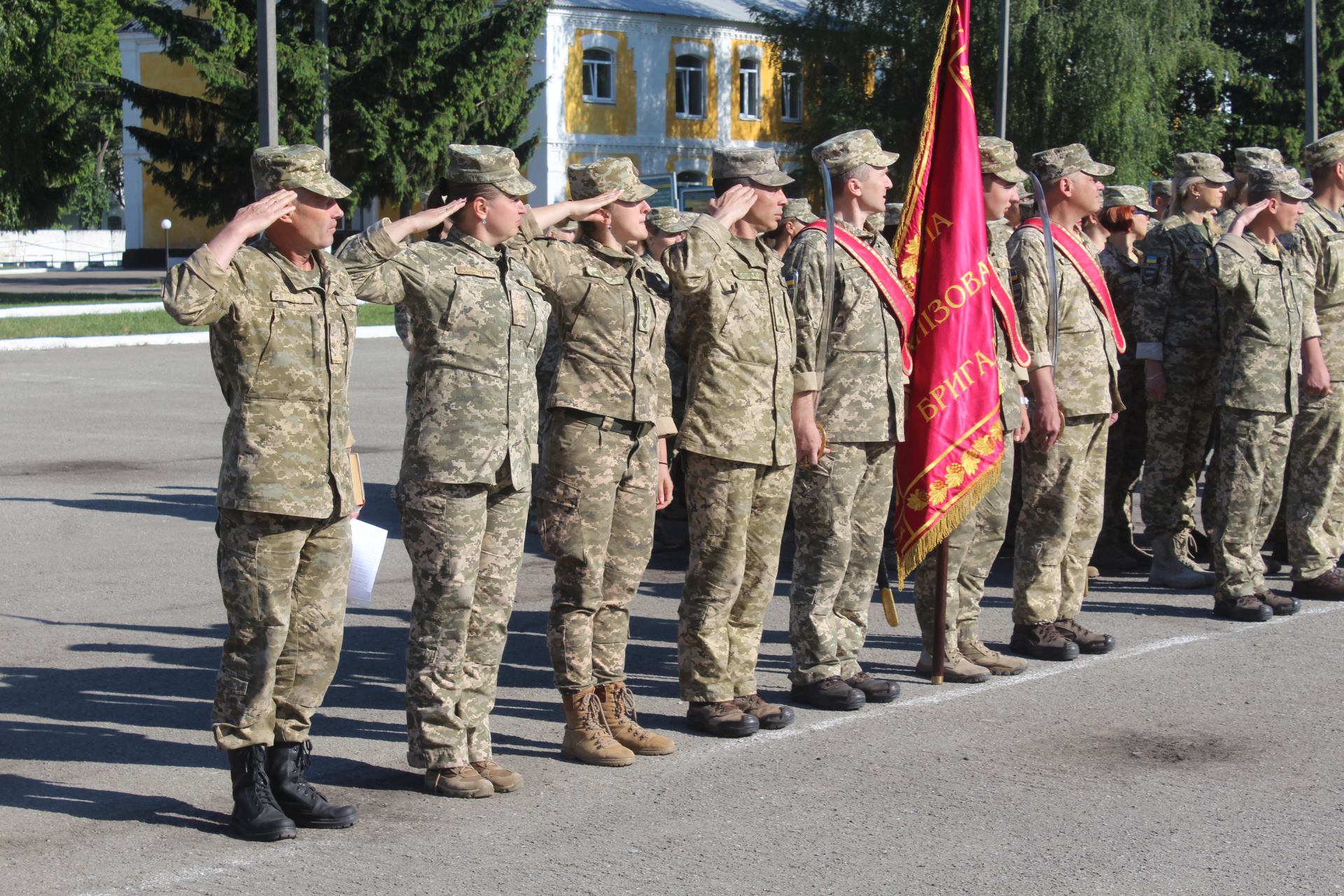 За традицією полковник Олександр Жакун урочисто передав Бойовий Прапор новому командиру бригади полковнику Сергію Войченку.