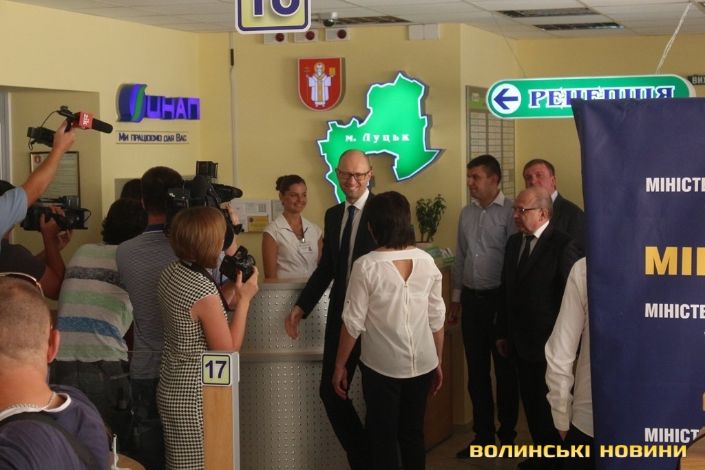 На запитання Яценюка, чи не замале, бува, приміщення для такої великої кількості відвідувачів, пані Лариса відповіла, мовляв, дещо замале. Однак, Луцький міський голова Микола Романюк «делікатно» її перебив і зазначив, що площі приміщення більш ніж достатньо, оскільки у майбутньому майже всі послуги ЦНАПу здійснюватимуться через мережу інтернет.