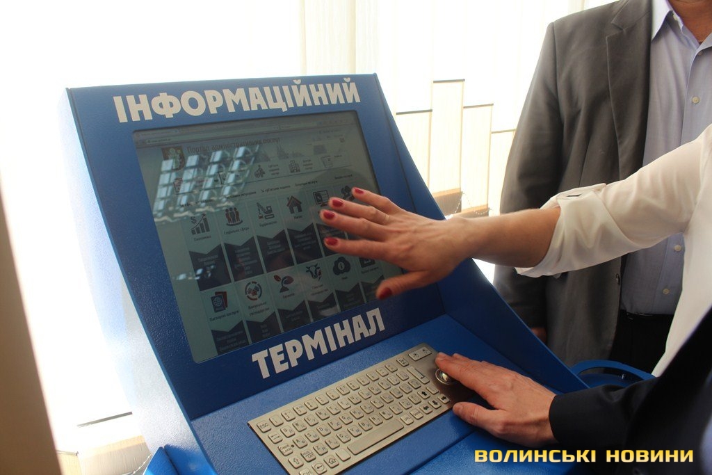 Так, директор ЦНАПу Луцької міської ради Лариса Карп’як коротко розповіла високопосадовцю про принцип діяльності установи, наочно продемонструвала, яким чином відвідувачі можуть користуватися адміністративними послугами.
