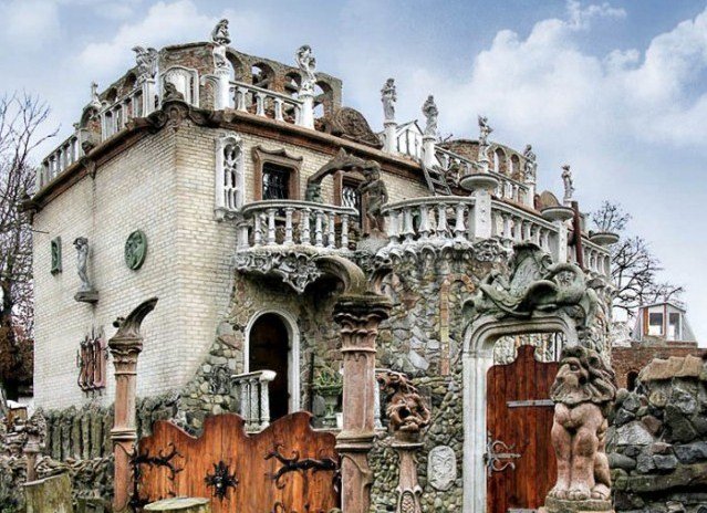 Ніяк не розумію що всі з тім будинком носяться як з писаною торбою.Нічого не розуміють певно а шкода- могильні цвинтарні надгробки зі старих кладовищ там повсюду ще й по ним ходять люди чому радіти ???А так званий скульптор певно клепки не мав коли з цвинтарів це все до себе звозив.