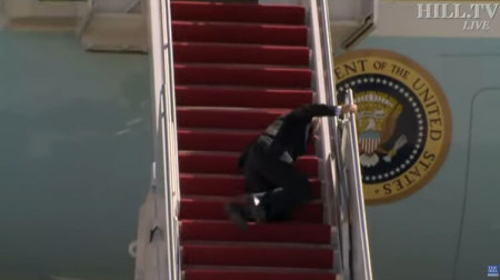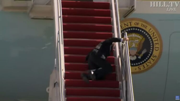 На кадрах видно, що 78-річний Байден виходить з вертольота, щоб пересісти в літак. Він досить хвацько починає підніматися трапом, але потім двічі спотикається, а в підсумку у зовсім падає. Розтерши забиту ногу, він все ж зміг сам дістатися до вершини сходів. Вже нагорі президент віддав честь військовослужбовцям і, злегка накульгуючи, зайшов в салон борту номер 1.