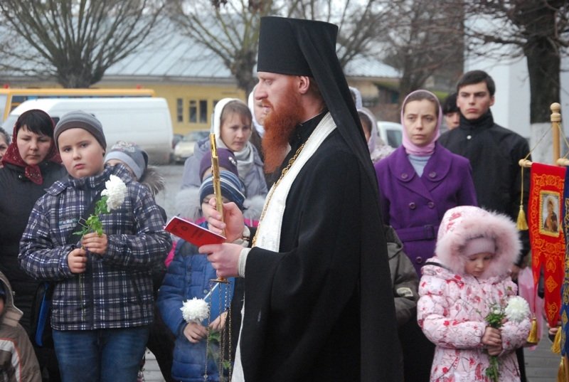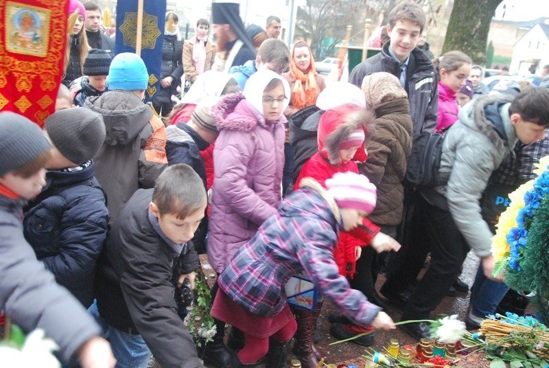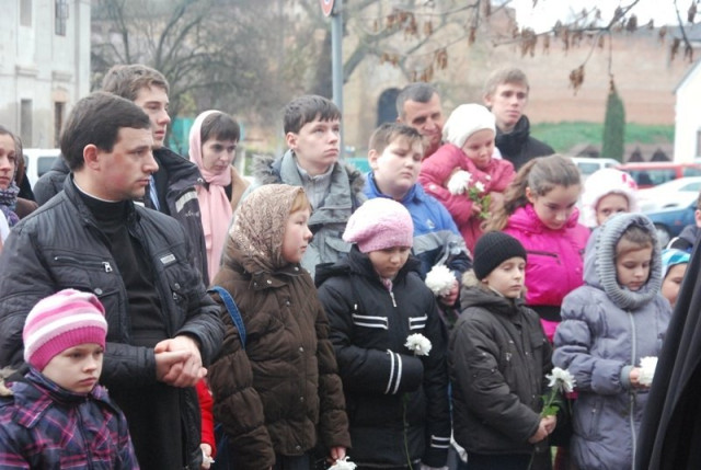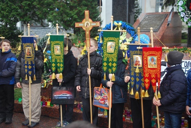 Коротка дорога від семінарії до Замкової площі. І короткі два слова, які співали учасники хресного ходу: “Господи, помилуй! Господи, помилуй!” Сучасні діти мало розуміють, що таке Голодомор, проте їхні душі щирі у молитвах до Бога. Отець Ілля перед початком спільної молитви за замучених голодом розказав дітям про ті трагічні часи в історії України. Приємно, що молилися разом і священик, і учні духовної семінарії, і батьки дітей, які разом зі своїми синами й доньками також взяли участь у цій скорбній ході.