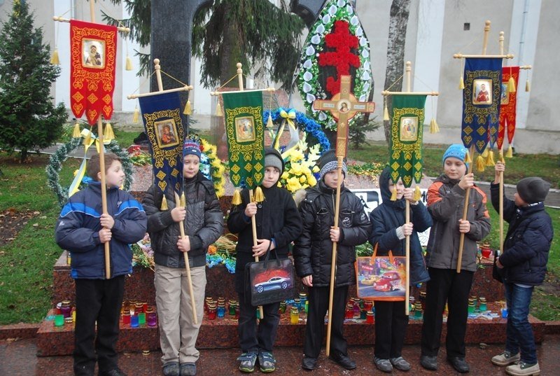 Цю незвичну процесію бачило немало лучан, які у своїх справах опинилися у Старому місті. Люди зупинялися на узбіччі, і з повагою проводжали поглядами дітвору. Зустрічні машини також розверталися, аби ніщо не заважало цій ході: з хрестом, хоругвами, з квітами у кожній дитячій руці… День вшанування жертв Голодомору 1932 – 33 років Україна відзначала у суботу, 23. Хресним ходом всі гурти вирушили від Волинської духовної семінарії, у класах якої «квартирують», на Замкову площу, до пам’ятника жертвам політичних репресій.