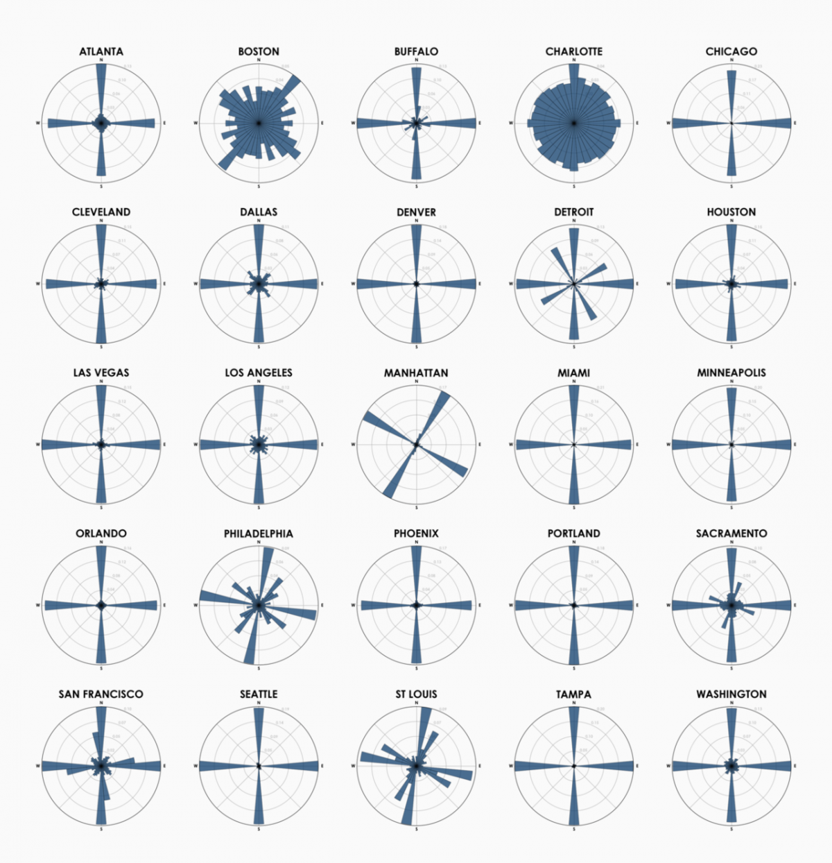 Американський дослідник створив «рози вітрів», на яких видно куди веде більшість вулиць міст США і світу. Українські програмісти за алгоритмом американського вченого проробили таку ж роботу з Києвом, Луцьком, Житомиром та іншими містами.