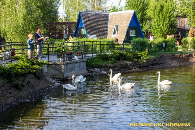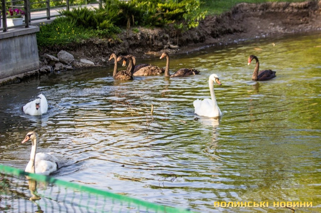 Також відвідувачів тішить справжнє «лебедине протистояння»: чорні та білі величні птахи грайливо плескаються у ставочку.