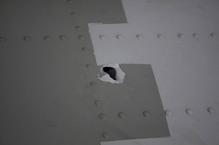 Під час огляду літака виявлено ушкодження, які можуть свідчити про наслідки обстрілу зі стрілецької зброї.