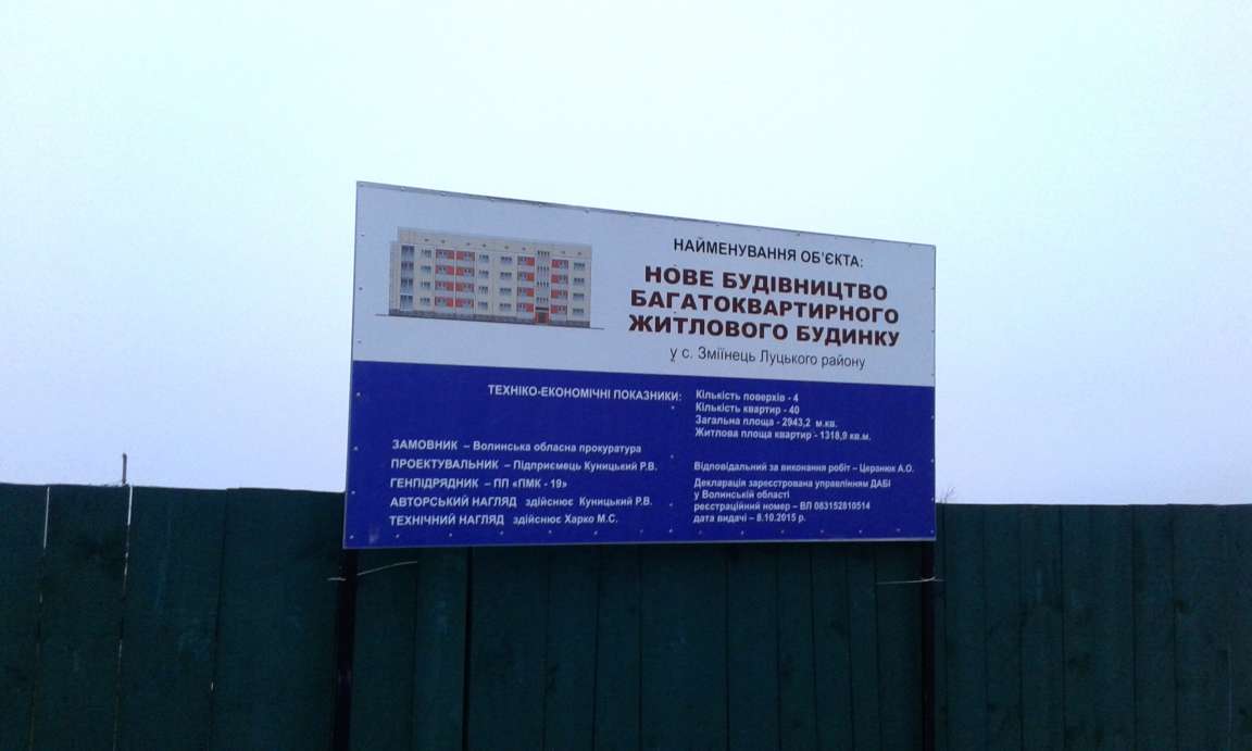 Як повідомляло Інформаційне агентство Волинські Новини, у селі Зміїнець Луцького району будується 9-поверхівка, частина квартир з якої обіцяна працівникам прокуратури області.