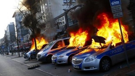 В аціях взяли участь представники ліворадикального руху Blockupy Frankfurt – поліція пов’язує підпали машин саме з їхньою акцією.