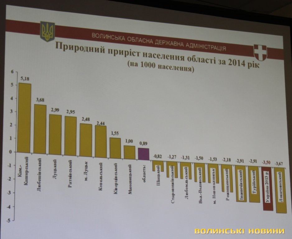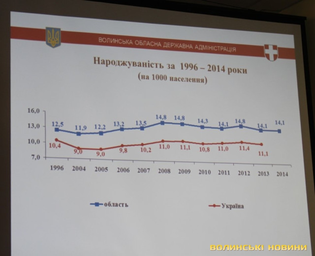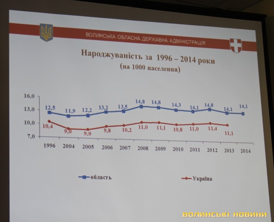 Як повідомив начальник управління Ігор Ващенюк, за народжуваністю Волинь має вищі від загальноукраїнських показники (14,1 на тисячу населення проти 11,1 ).