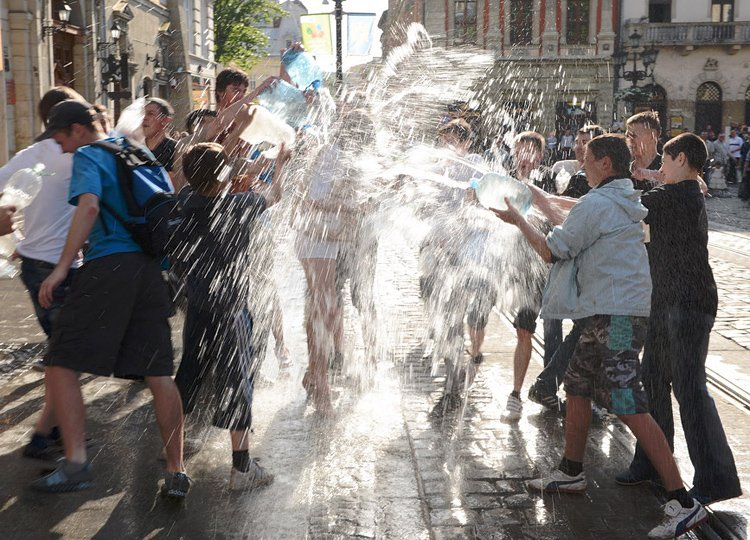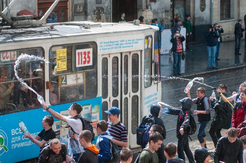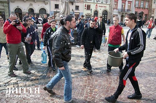 На площі організували спеціальні зони, де можна було набрати води у пляшки і пістолети. Молоді люди і дітлахи обливали один одного водою. «Вирішили організувати, щоб була повага до людини. Води вистачить усім, отож можна прийти на площу Ринок, а ось перехожих не потрібно поливати, щоб не казали, що ми забіяки», – зазначив мер Львова Андрій Садовий, - інформує РадіоСвобода.