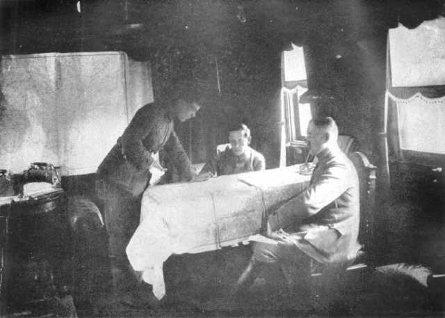За столом під час наради 1919 року праворуч Осецький, ліворуч Петлюра