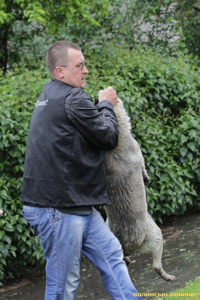 Після теоретичної частини «курсу молодого бійця» розпочалась практика. Перший екстрений виклик – пітбуль (собака бійцівської породи), якого через старість «дбайливі» господарі викинули на вулицю. До людей ображений собака претензій не мав, а от інших «побратимів» з вулиці сприймав вороже, тож мешканцям вулиці Ковельської доводилось розливати забіяк водою.
