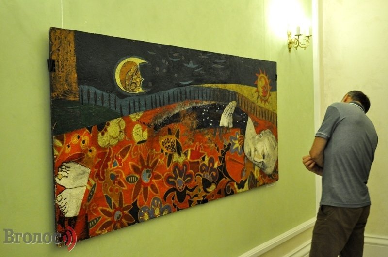 Експозиція представляє серію робіт виконаних технікою вибійки на полотні. Твори об’єднані назвою «Чаша Долі».