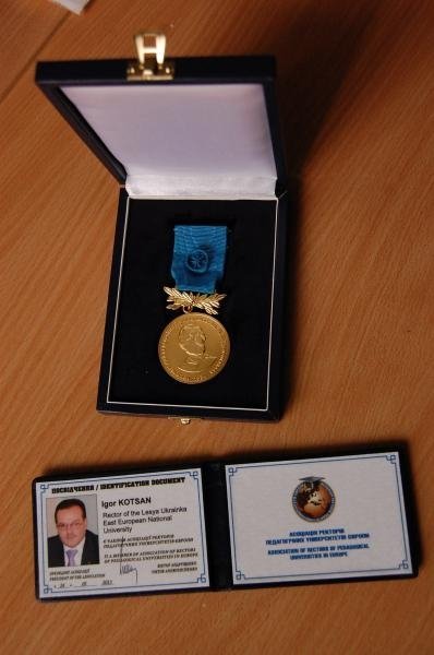 Також почесний професор у галузі зв’язків та комунікації Національного педагогічного університету імені М. П. Драгоманова, радник АРПУЄ, Почесний сенатор Морітц Гунцінґер вручив медаль «За визначний внесок у поширення ідеї єдності Європи» ректору СНУ імені Лесі Українки Ігорю Коцану.