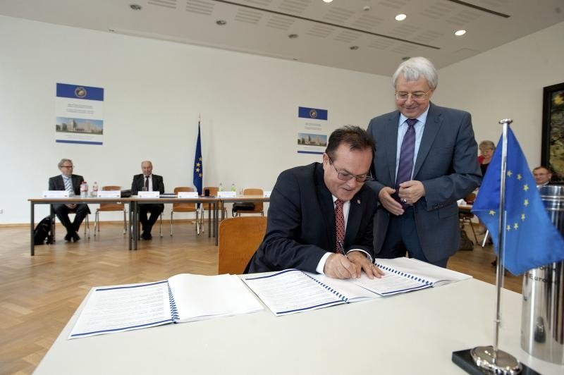 Також почесний професор у галузі зв’язків та комунікації Національного педагогічного університету імені М. П. Драгоманова, радник АРПУЄ, Почесний сенатор Морітц Гунцінґер вручив медаль «За визначний внесок у поширення ідеї єдності Європи» ректору СНУ імені Лесі Українки Ігорю Коцану.