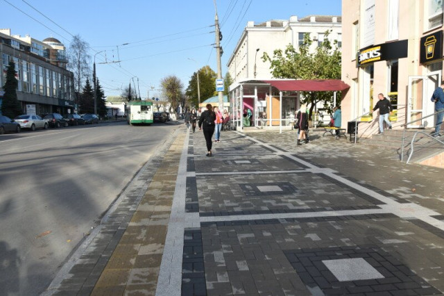 Тож усюди, де відбуваються ремонтні роботи, застосовують пониження бордюрного каменю та вкладання тактильної плитки.