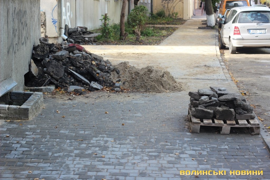«На вулиці Наливайка, 10, 10а, 12 весь двір буде обкладений бруківкою. Ми знайшли хорошого підрядника, який швидко та якісно виконує договірні зобов’язання й до зими має завершити все, щоб люди комфортно тут ходити. З підрядниками домовилися, аби усі роботи завершили цього року. Тому й шукали надійних партнерів, які вже позитивно себе зарекомендували раніше, щоб лучани не ходили взимку по щебеню, а восени, зі сходженням снігу, по болоту. А з тими підрядниками, які торік халатно віднеслися до своєї роботи, цього року співпрацю не продовжували», - розповідає Ігор Поліщук.Пані Ольга розповідає, що раніше стан двору був таким, що можна було й ноги поламати.