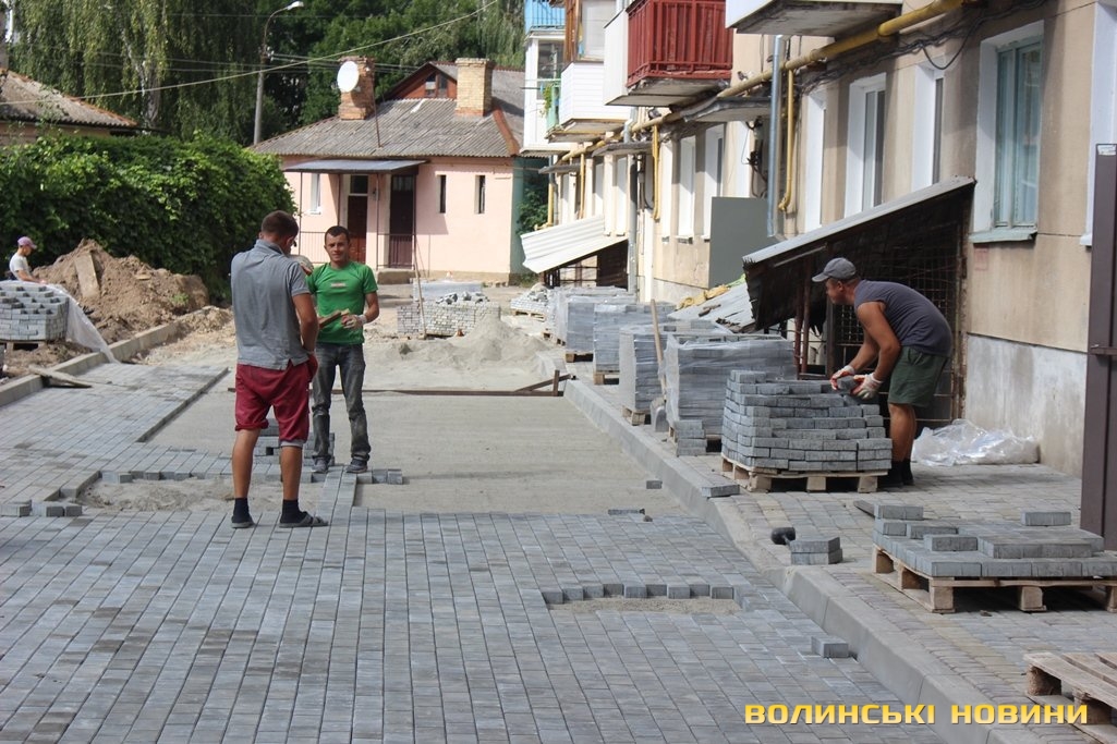 За словами Юрія Крася, двір на Гулака-Артемовського, 16 вкладається бруківкою, тобто з відновлювальних матеріалів, які можуть бути повторно використані при розбиранні та аваріях. По цьому двору було прийнято рішення, аби класти сюди бруківку, оскільки ці будинки є старими, то можливі обриви мереж. Гарантія на експлуатацію – 7 років.Лучани також не приховують задоволення ремонтом біля їхніх будинків: «Ми дуже задоволені виконаними роботами. 25 років тому у дворі були ями, в яких було по коліна води – неможливо було пройти. Зараз цього немає», - поділилася враженнями лучанка Галина Гевелюк.На вулиці Захарова, 10-12 ремонт передбачає будівництво зливової каналізації, вартість якої 600 тисяч гривень, аби в дворі не стояла вода.