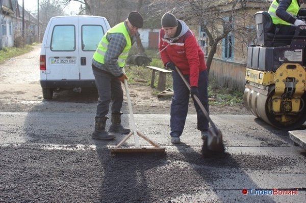 Асфальт на ремонт доріг постачає завод в селищі Луків Турійського району. Роботи тривають і сьогодні.