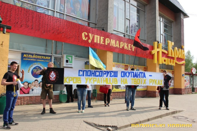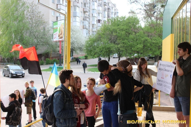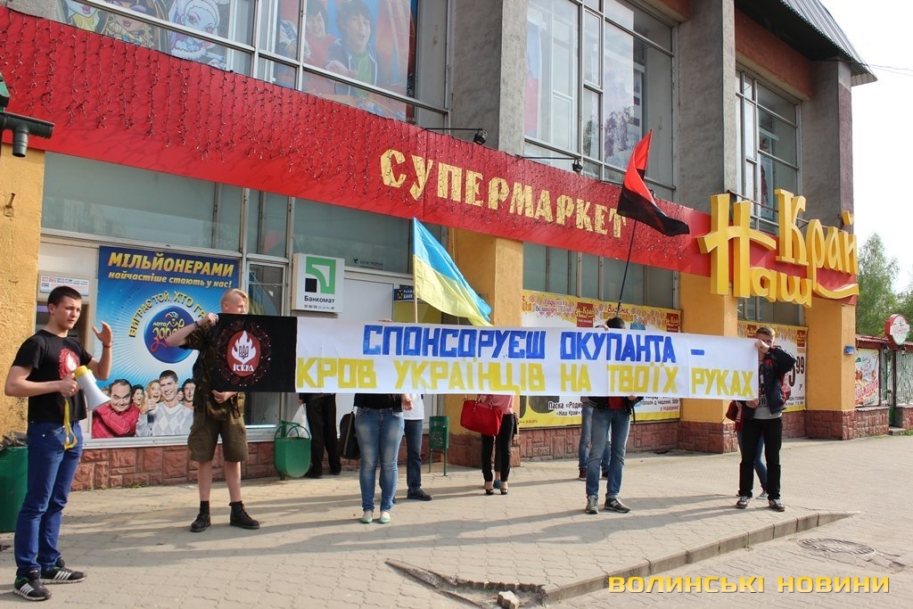 Першою зупинкою активістів став супермаркет «Наш Край» поблизу торгового центру «Гостинець».
