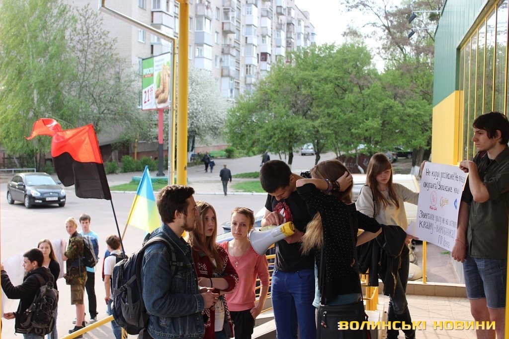 Перед входом розгорнули банер та через гучномовець закликали не фінансувати кровопролиття, яке чинить Росія на українській території. Також молоді люди роздавали інформаційні флаєри перехожим.