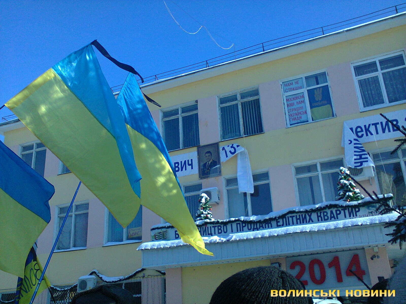 У свободівському вікні з’явився напис зі словами Симона Петлюри: «Нам не страшні московські воші, нам страшні українські гниди». Перехожі гірко посміхалися, бо всі розуміли, що «гниди» живуть і в княжому місці.Велелюдне віче у Володимирі-Волинському зібралося 23 січня 2014 року, коли на холодну бруківку Грушевського впали перші жертви режиму.