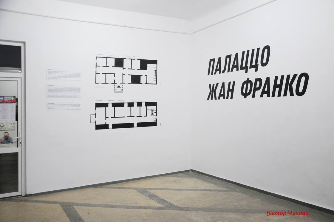 На початку експозиції можна побачити план будинку з вказанням студій і художників, які там працюють, а також фото з актуальним виглядом палаццо Жан Франко. В окремій напівзалі галереї глядачі поринають в особливу атмосферу цієї самобутньої локації, переглядаючи світлини з різних івентів, спонтанних фіксацій буднів луцького арт-простору. Жителі арт-споту регулярно спілкуються зі своїми глядачами під час тематичних лекцій, персональних виставок, переглядів кінофільмів, неформальних вечірок тощо.