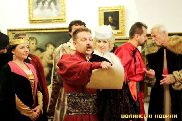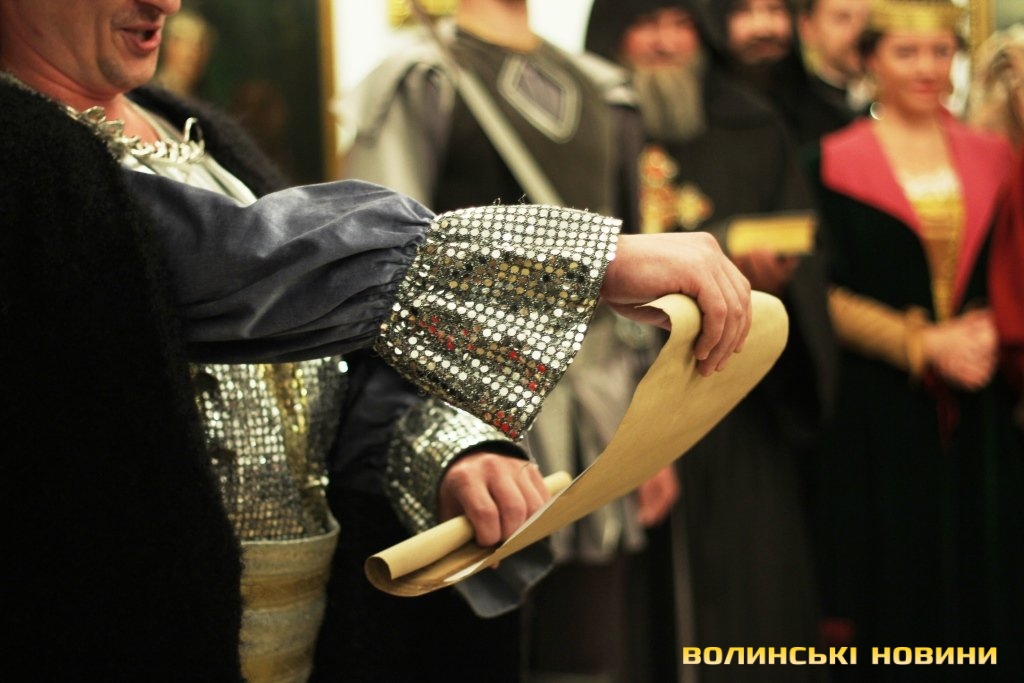 Під час заходу гостей дійства поблизу брами замку зустрічав луцький Кликун, оголошуючи титули гостей. Відкриття виставки супроводжувалося театралізованим дійством, під час якого відбулося обрання князя Любарта у виконанні акторів Волинського академічного обласного українського музично-драматичного театру. Надали слово і великому князю Вітовту, образ якого втілив для сучасників гість із Литви.