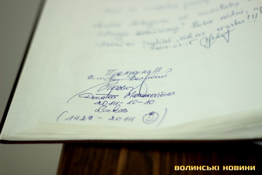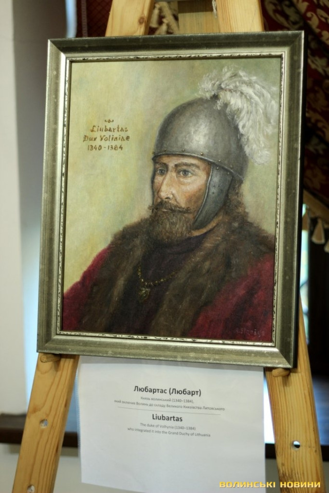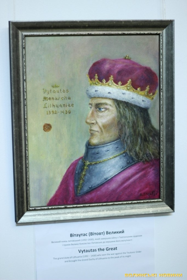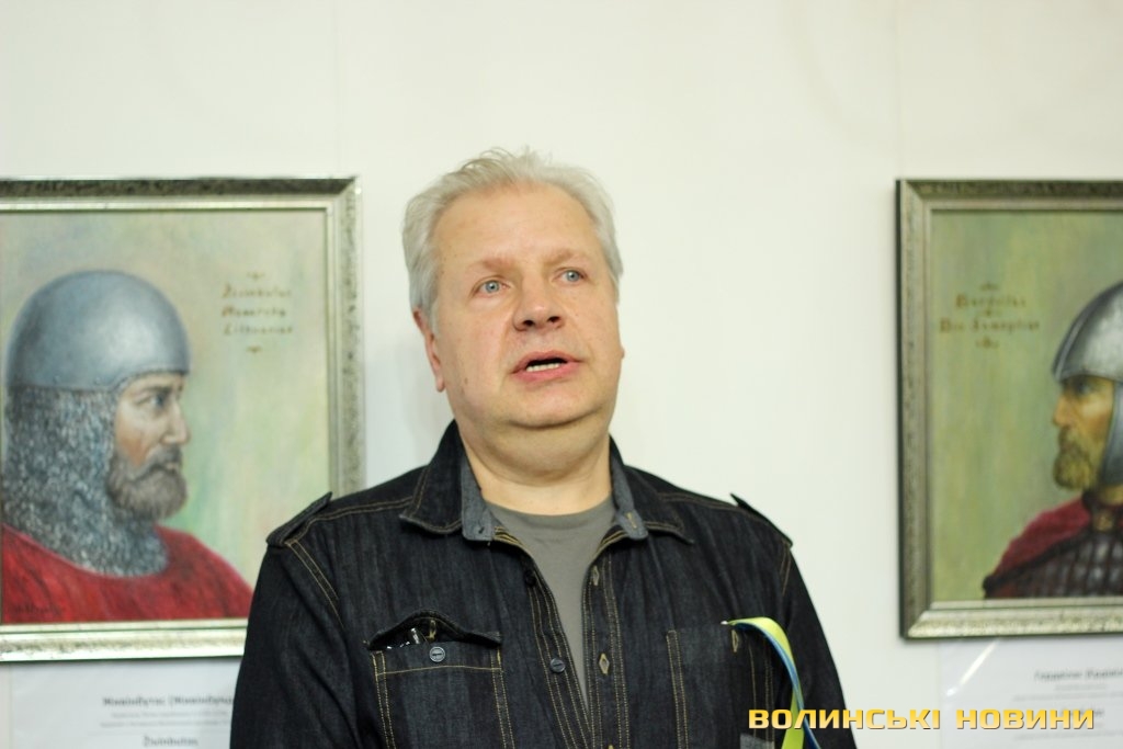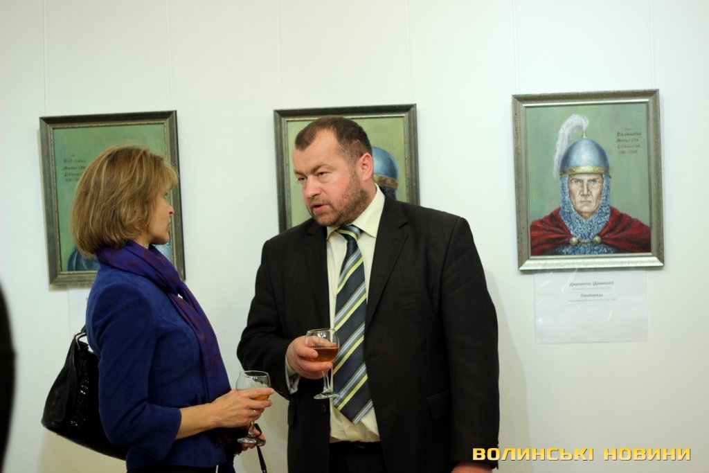 Художник Артурас Слапшис розповів, що презентує лучанам 45 портретів, що охоплюють 300 років історії Великого Князівства Литовського. Ідея проекту у нього виникла давно, коли митець мешкав в Америці. Повернувшись в Литву, він створив декілька портретів найвидатніших князів. Доля звела його з істориками та Антанасом Гедвіласом, які вирішили розширити проект та видати книгу. Проектом зацікавилися українці, які запросили митця у Луцьк. Колекція портретів є унікальною, адже більше, ніж половина державних діячів зображені на полотні вперше. Художник розповів, що у нього виникла спонтанна ідея – намалювати колекційні поштові марки для України, адже він має досвід створення марок для Литви та готовий працювати для українців безплатно.