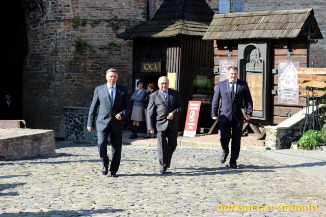 Голова облдержадміністрації Володимир Гунчик попросив дозволу «увімкнути машину часу» та перенестися в історію. Так, 585 років тому народ Лучеська приймав поважних гостей, а городяни добре розуміли, що небезпека, яка чатує за мурами великого міста, потребує серйозної підтримки, єднання. Нині небезпека знову стоїть біля кордонів України, а український народ знову приймає доленосне рішення – через героїзм своїх синів, пролиту кров, підтверджує своє право вибору, право поєднання своєї долі з європейськими народами. Підписання Угоди про Асоціацію з Євросоюзом він назвав продовженням рішень, які приймали наші предки.