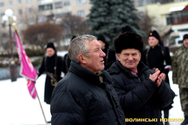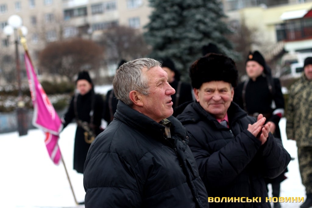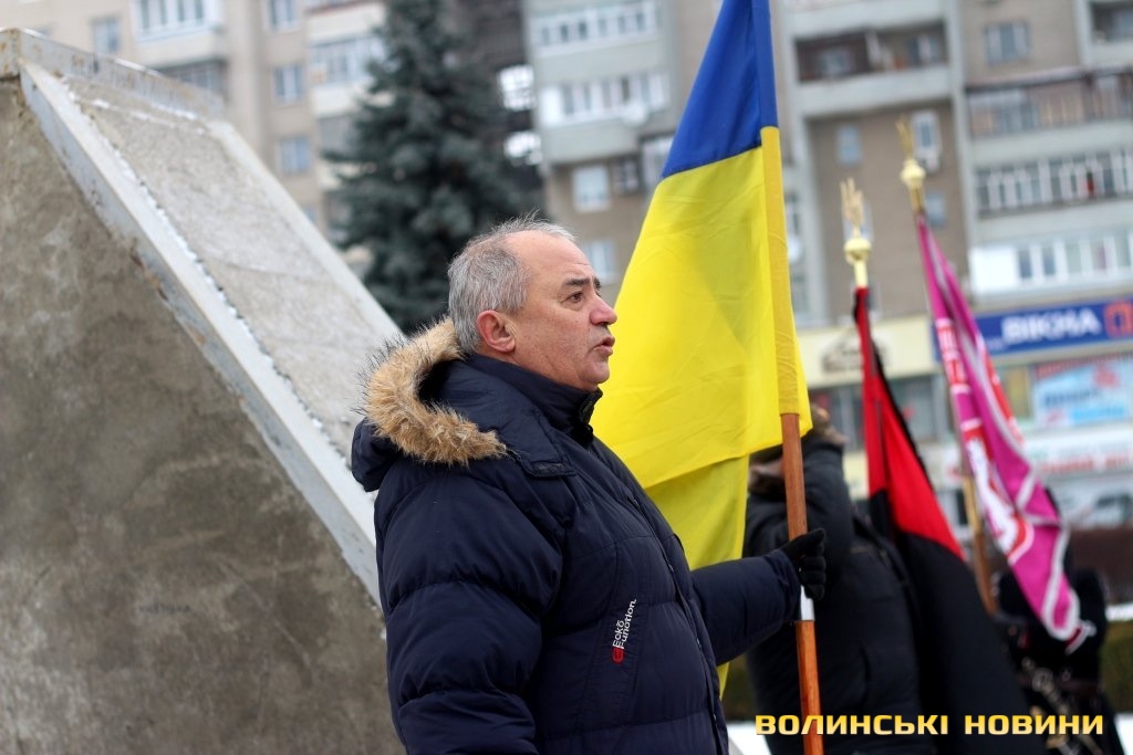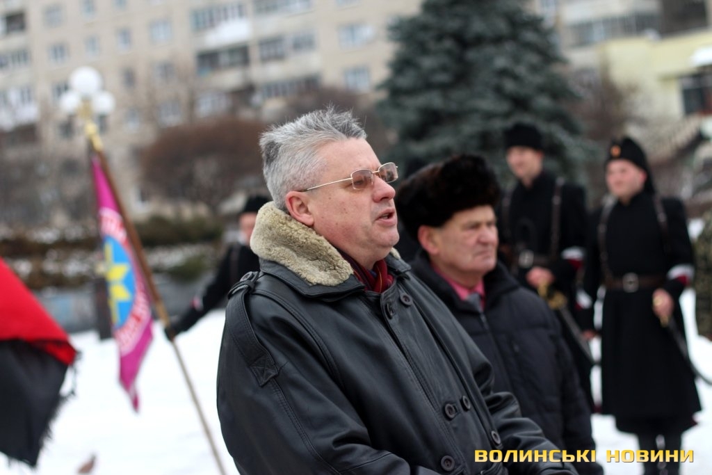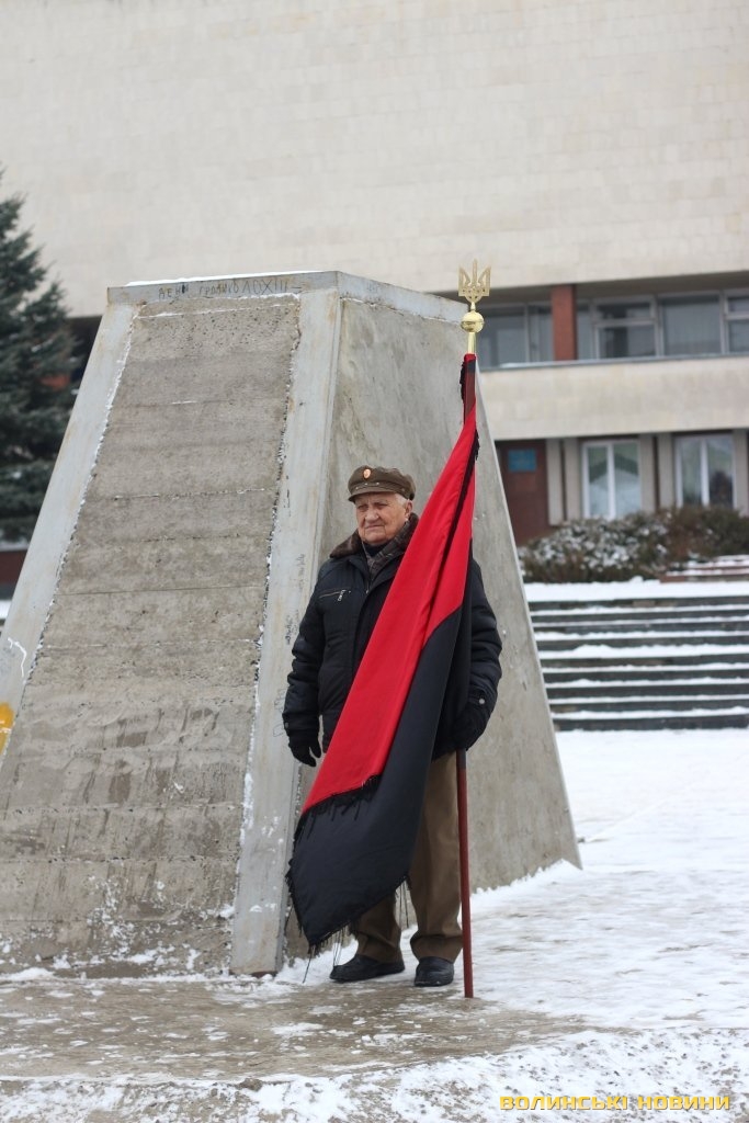 Він зазначив, що в історії України було чимало людей-поводирів, які вміли згуртувати націю у найскладніші часи, починаючи від Ярослава Мудрого. Однією із таких постатей, з його слів, є Степан Бандера.Начальник відділу зв’язків зі громадськістю Луцькради Олена Макарова подякувала від імені міського голови усім, хто шанує та пам’ятає історію та прийшов, аби вшанувати пам'ять видатного сина українського народу, який до останнього свого подиху боровся за незалежність України. З її слів, його вчинки повинні стати дороговказом для нас у побудові могутньої європейської держави.Галичанин Ярослав, який також вирішив вшанувати пам'ять великого українця, прочитав власну поезію про Україну.Депутат міської ради Аскольд Пекарський зазначив, що Степан Бандера став символом України, настільки страшним для ворогів, що усіх мешканців заходу України стали називати бандерівцями. Депутат нагадав, що попри образ Степана Бандери, як того, хто вбивав росіян, він був освіченою людиною, вів здоровий спосіб життя, займався спортом, знав чимало іноземних мов та бачив усіх українців у майбутньому такими. Прикладом для наслідування для молоді він назвав Степана Бандеру, відзначивши, що, на жаль, представників молодого покоління на мітингу небагато.Насамкінець, Василь Кушнір побажав усім присутнім зібратися наступного року вже не біля п’єдесталу, а поблизу пам’ятника Степану Бандері.