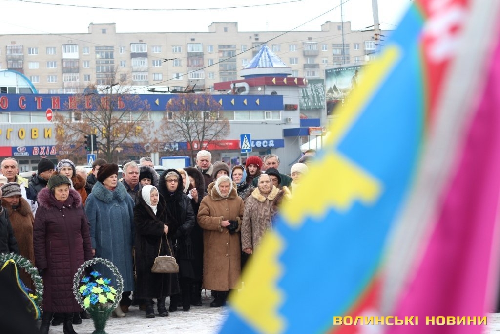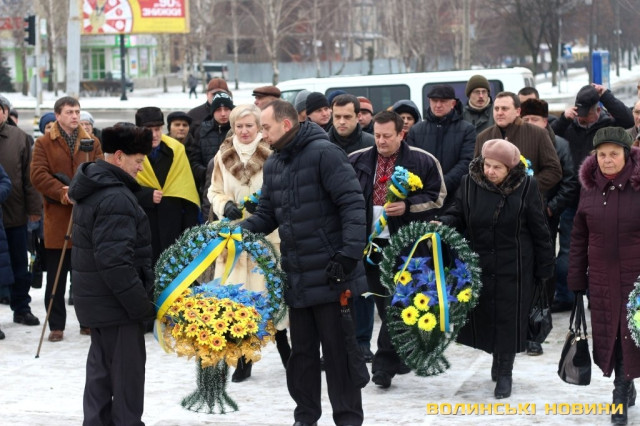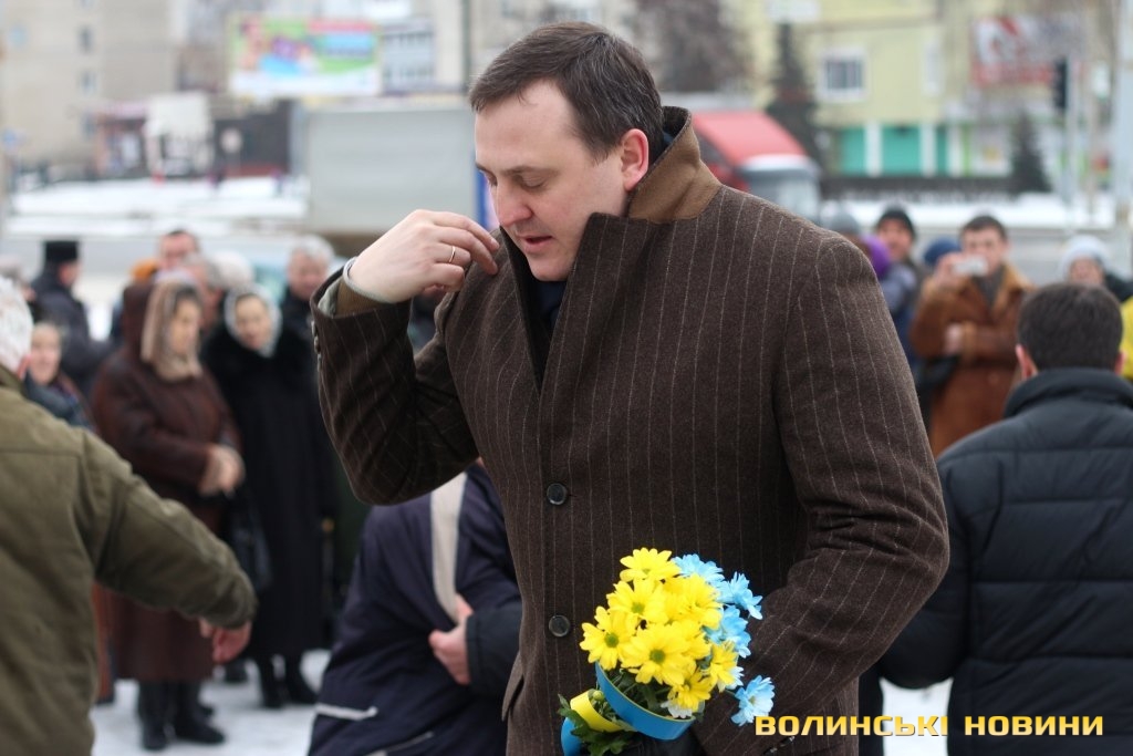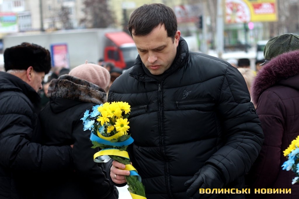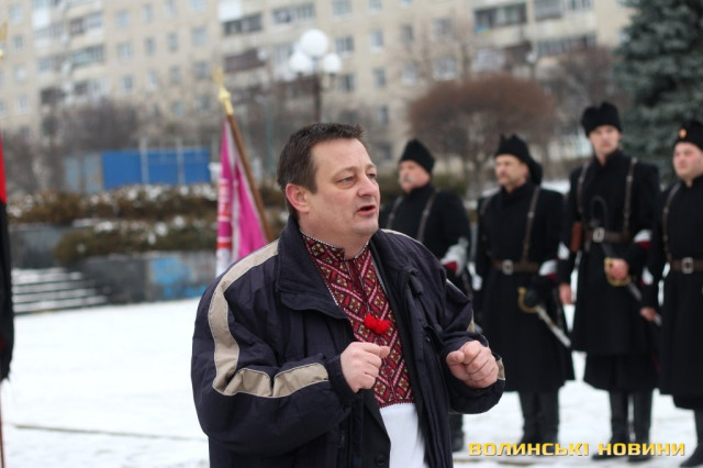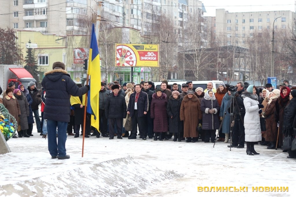Він зазначив, що в історії України було чимало людей-поводирів, які вміли згуртувати націю у найскладніші часи, починаючи від Ярослава Мудрого. Однією із таких постатей, з його слів, є Степан Бандера.Начальник відділу зв’язків зі громадськістю Луцькради Олена Макарова подякувала від імені міського голови усім, хто шанує та пам’ятає історію та прийшов, аби вшанувати пам'ять видатного сина українського народу, який до останнього свого подиху боровся за незалежність України. З її слів, його вчинки повинні стати дороговказом для нас у побудові могутньої європейської держави.Галичанин Ярослав, який також вирішив вшанувати пам'ять великого українця, прочитав власну поезію про Україну.Депутат міської ради Аскольд Пекарський зазначив, що Степан Бандера став символом України, настільки страшним для ворогів, що усіх мешканців заходу України стали називати бандерівцями. Депутат нагадав, що попри образ Степана Бандери, як того, хто вбивав росіян, він був освіченою людиною, вів здоровий спосіб життя, займався спортом, знав чимало іноземних мов та бачив усіх українців у майбутньому такими. Прикладом для наслідування для молоді він назвав Степана Бандеру, відзначивши, що, на жаль, представників молодого покоління на мітингу небагато.Насамкінець, Василь Кушнір побажав усім присутнім зібратися наступного року вже не біля п’єдесталу, а поблизу пам’ятника Степану Бандері.