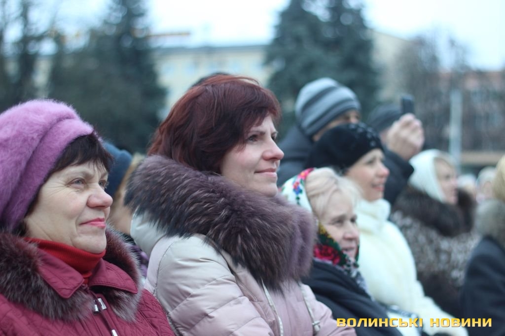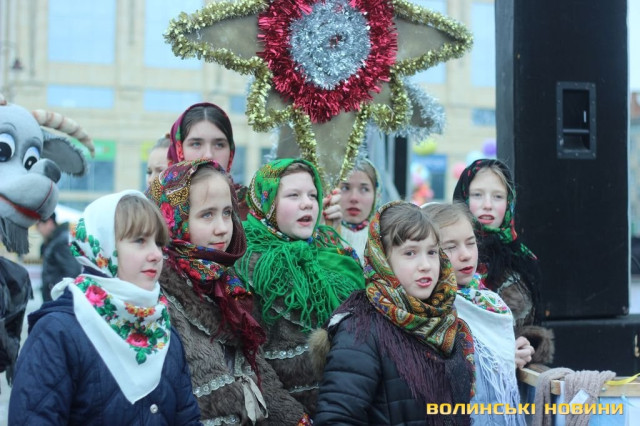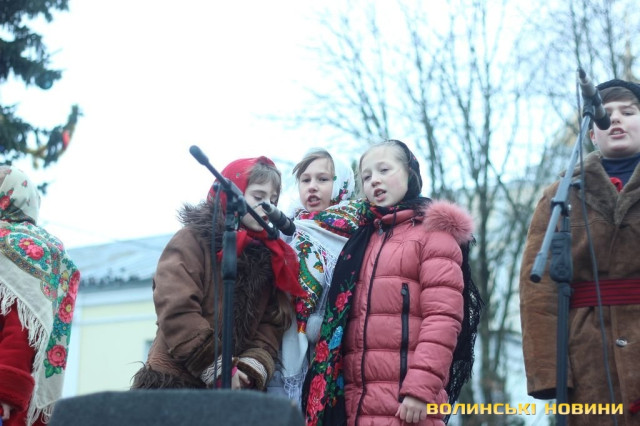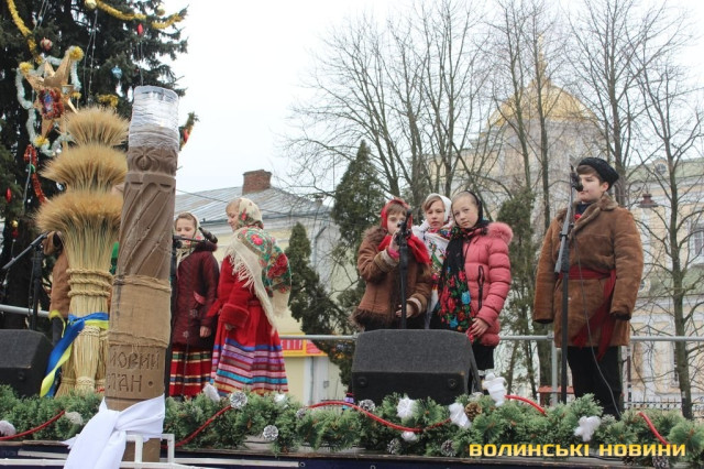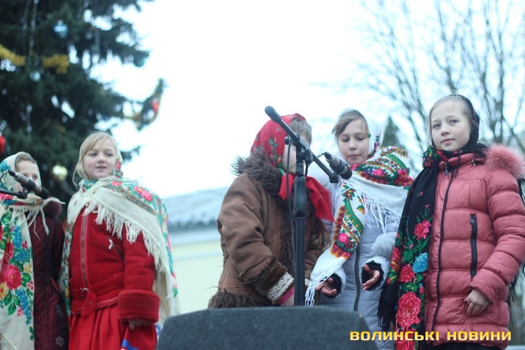 Після урочистої частини на сцені з’явились юні колядники – розпочали свято члени колективу «Передзвін» луцької школи №2, після чого колядками та різдвяними піснями присутніх розважали колективи «Вишиванка» зі школи №23 та «Різдвяники» із ЗОШ №13.