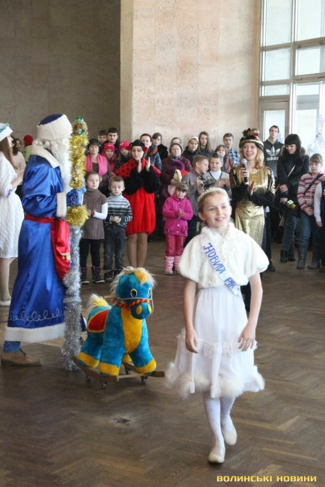 Зі святами дітей та батьків привітала заступник голови правління благодійного фонду «Фонд Ігоря Палиці – Новий Луцьк» Ірина Констанкевич: «У ці дні в нас є нагода думати про щось добре, робити своїм близьким гарні справи, допомагати один одному, нести свою любов, милосердя, добро ближнім. Сьогодні ми з вами зібралися у Палаці учнівської молоді для того, щоб покружляти хороводами навколо ялинки, подивитися новорічну казку, побажати один одному тільки хорошого. Гарного вам свята. Я дякую організаторам – Палацу учнівської молоді, Ліні Вікторівні Галан та Луцькому міському центру соціальних служб для сім’ї, дітей та молоді за те, що вони вміють створити атмосферу радості та добра на своїх заходах».