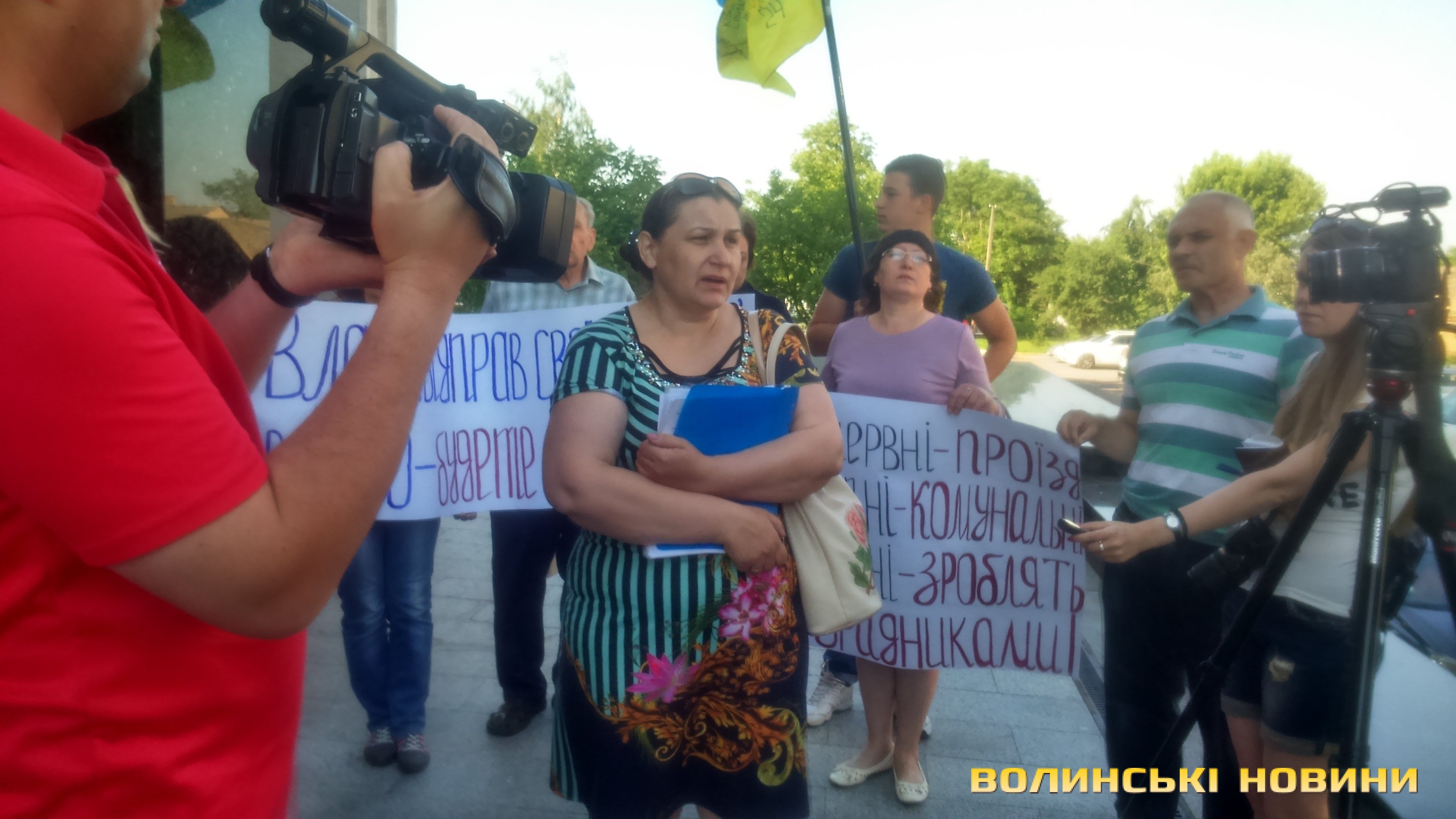 Трошки пізніше до мітингувальників підійшов голова Волинської ОДА Володимир Гунчик, він запросив їх до овальної зали ОДА, де наразі не може розпочатись оперативна нарада.