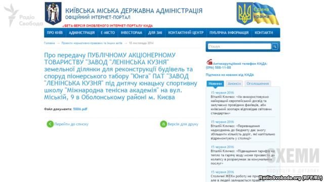 Київ, Пуща-Водиця, старі радянські корпуси табору «Юнга». Київська влада доручила їх реконструювати заводу «Ленінська кузня» – підприємству президента України Петра Порошенка та заступника голови його фракції Ігоря Кононенка, - йдеться у розслідуванні Радіо свободи.