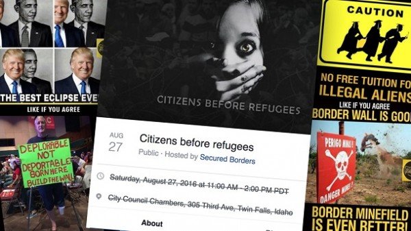 Так, в мережі з’явилася подія під назвою «Citizens before refugees» (Громадяни важливіші, ніж біженці), в якій мешканців міста Твін-Фоллс в штаті Айдахо закликали вийти на антиімміграційний протест під міською радою. Подія була створена сторінкою «SecuredBorders» (Безпечні кордони), яка позиціонується як американська антиімміграційна спільнота й була згодом викрита як пропагандистська сторінка, керована з Росії. На момент, коли Facebook її заблокувала, у сторінки було 133 тисячі підписників. До того, як подію заблокувала адміністрація соцмережі, 4 особи клікнули, що підуть на мітинг та ще 48 клікнули, що зацікавилися подією. Деякі профілі зацікавлених учасників містили інформацію про те, що вони є мешканцями Твін-Фоллз.