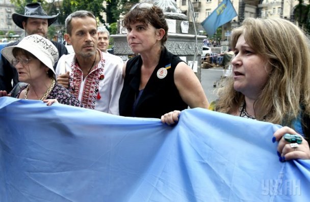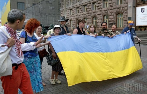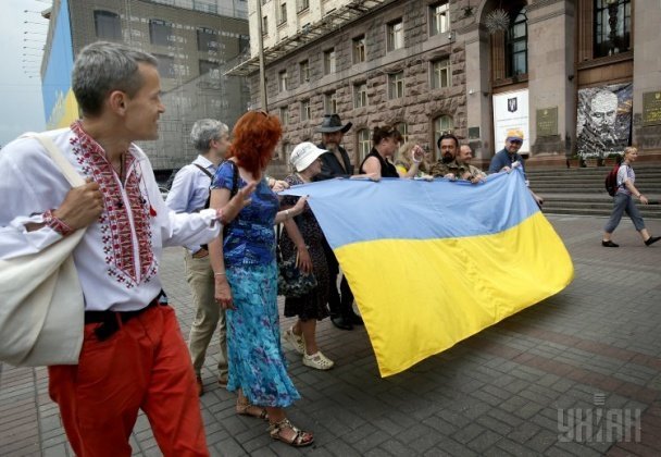Сьогодні у центрі Києва російські активісти надягли українські вишиванки та пронесли у руках синьо-жовтий прапор, аби підтримати українців. Вони приїхали до столиці України і вирішили влаштувати у центрі Києва свою акцію, - інформує ТСН.