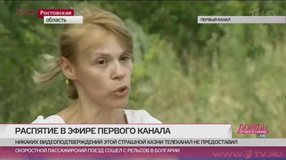 Нагадаємо, 12 липня перший канал РФ продемонстрував сюжет, в якому біженка з Донбасу заявила, що на її очах українські військові розіп’яли хлопчика.