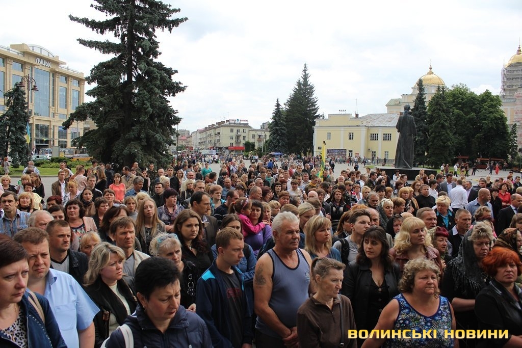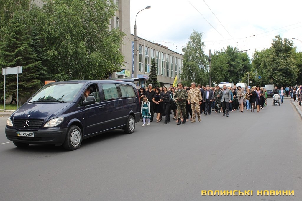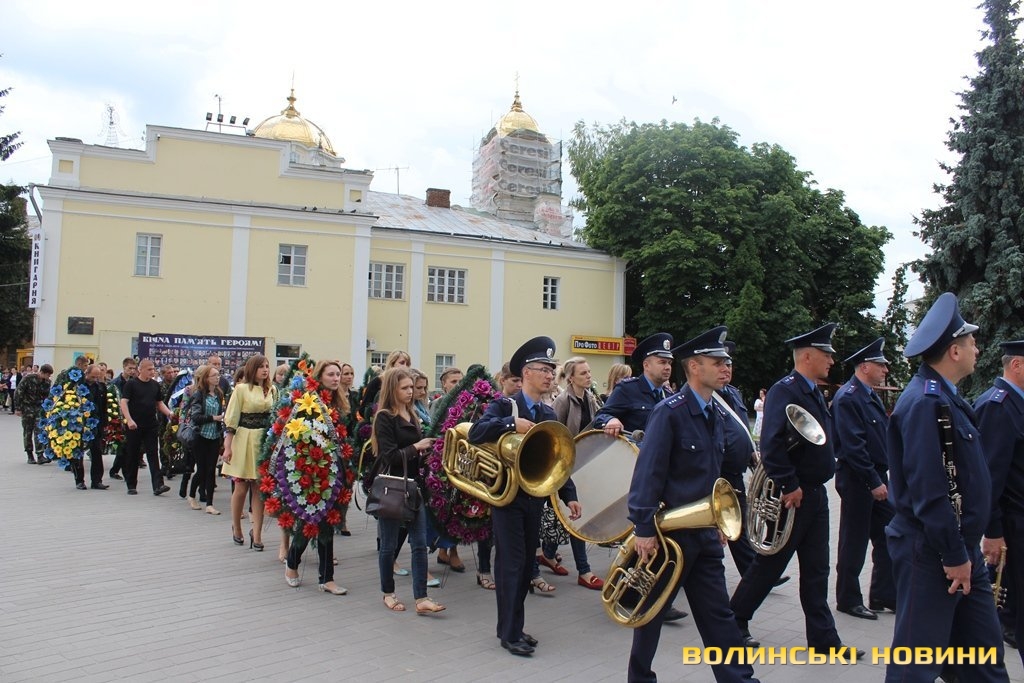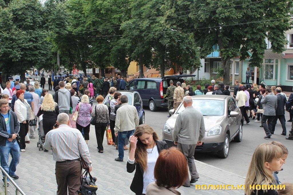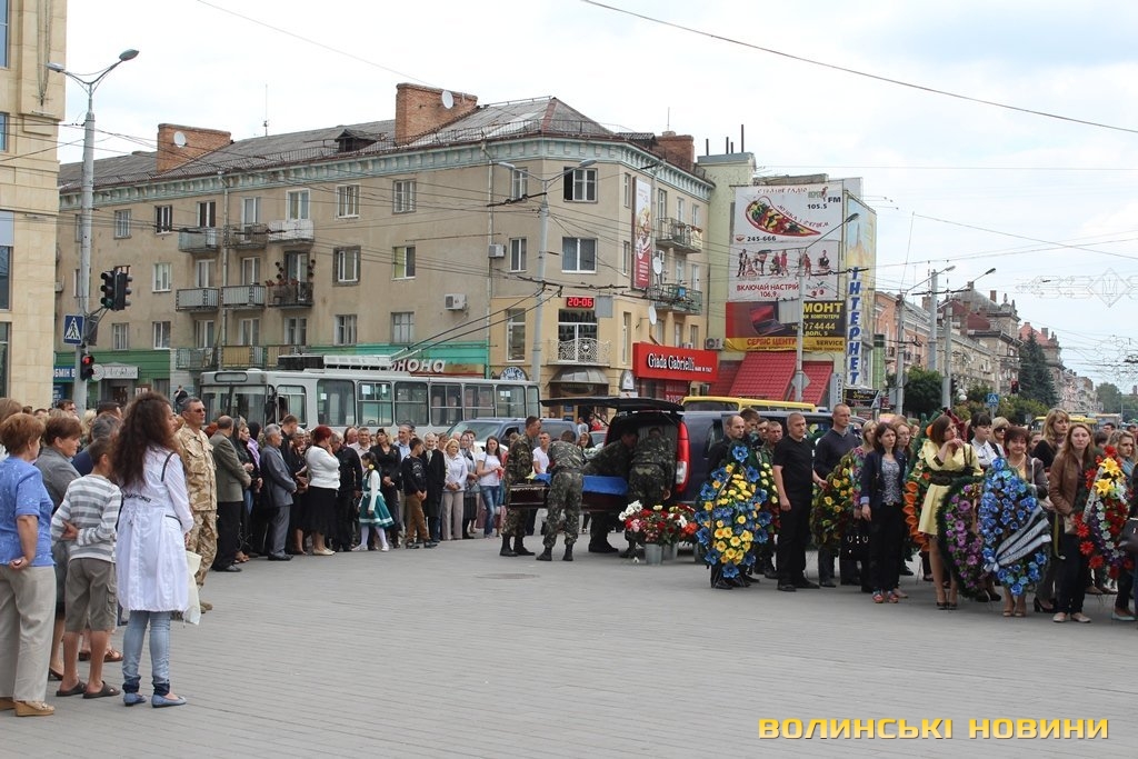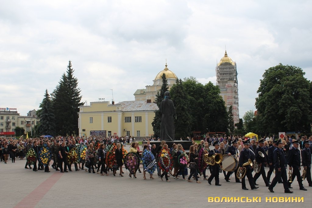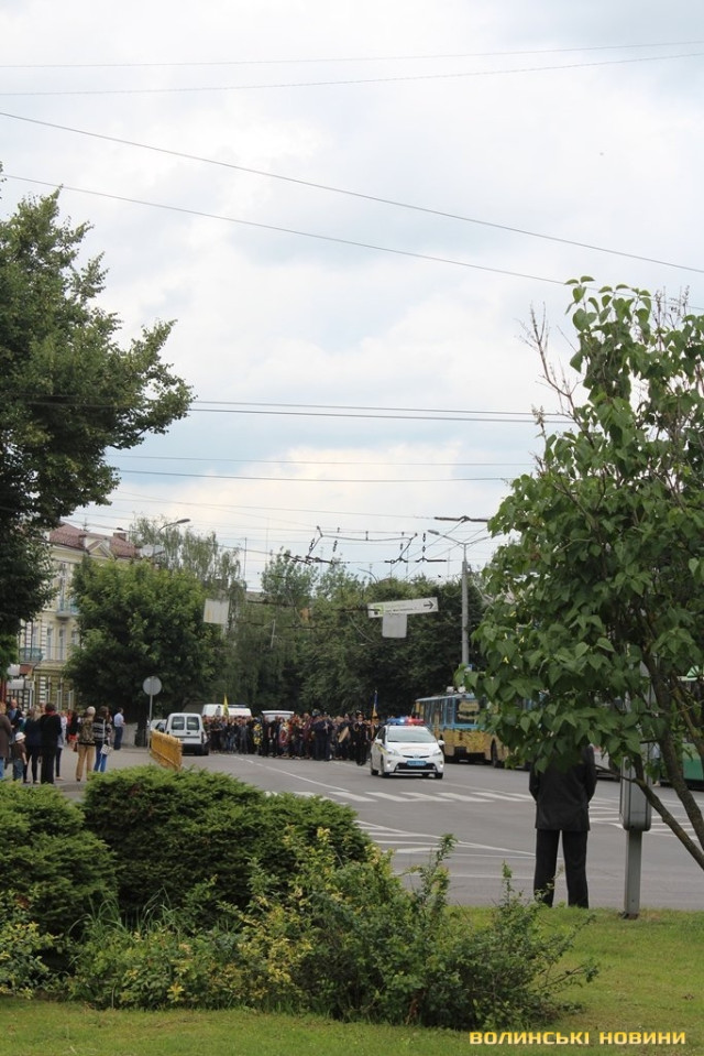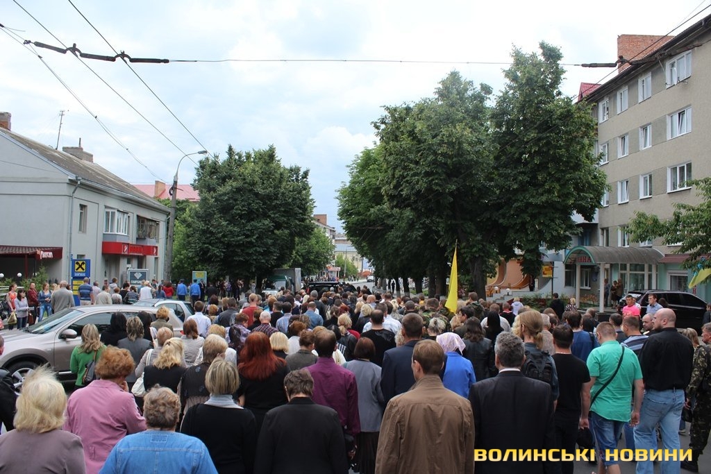 Траурна процесія рушила від Будинку панахиди до центральної площу міста, куди сотні лучан прийшли попрощатись зі своїм земляком.