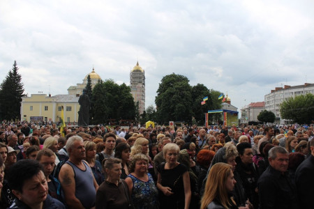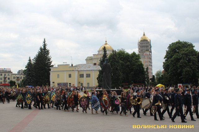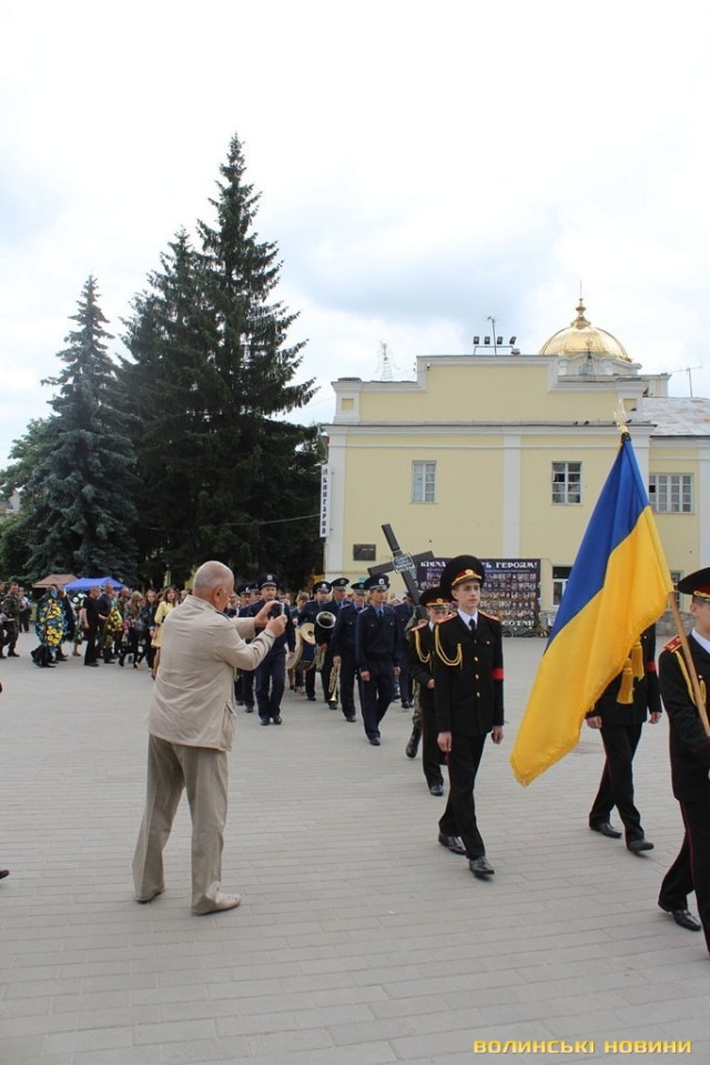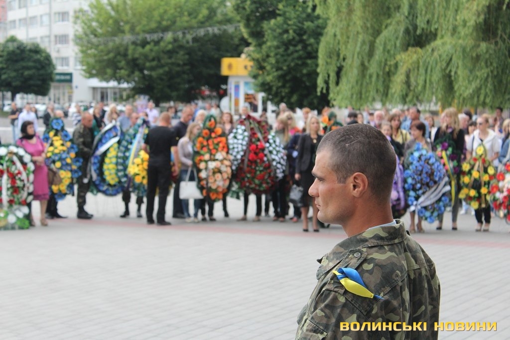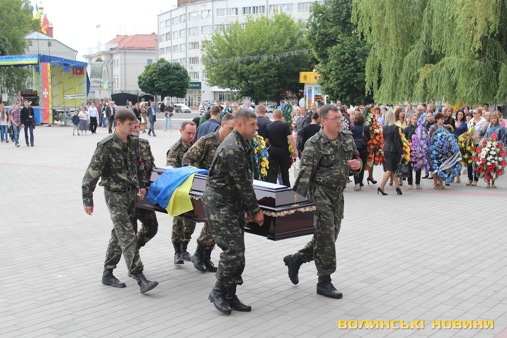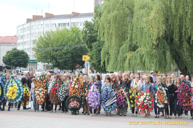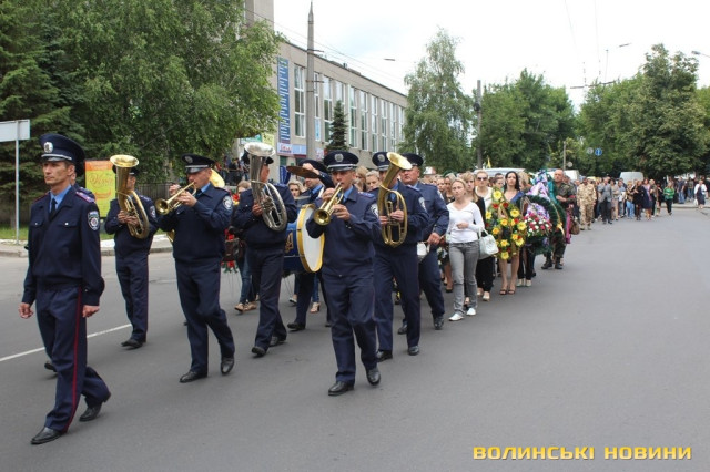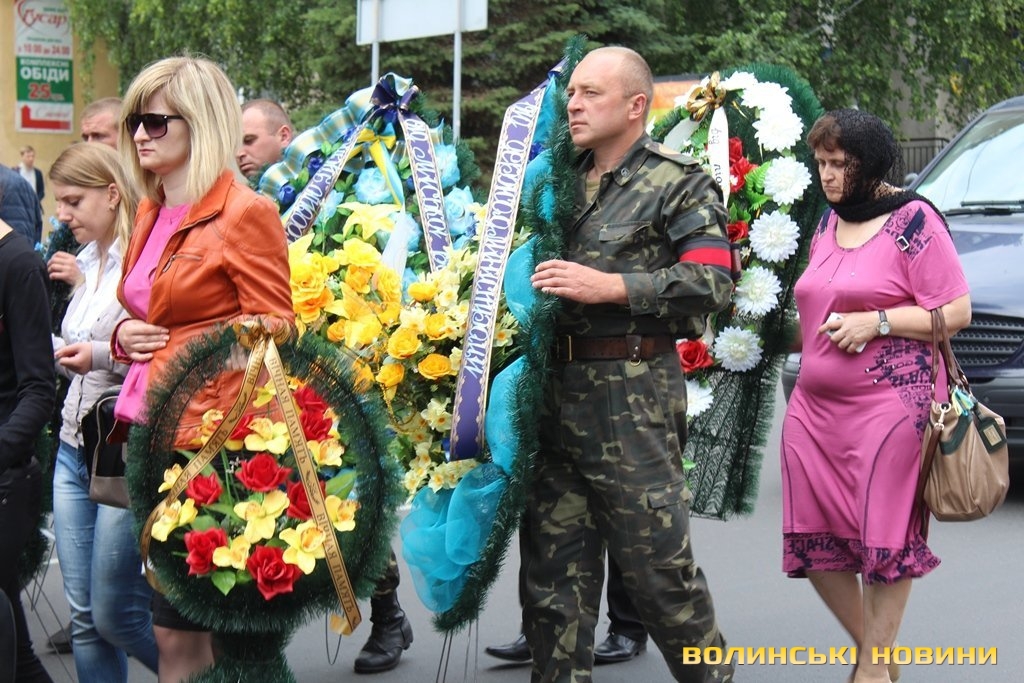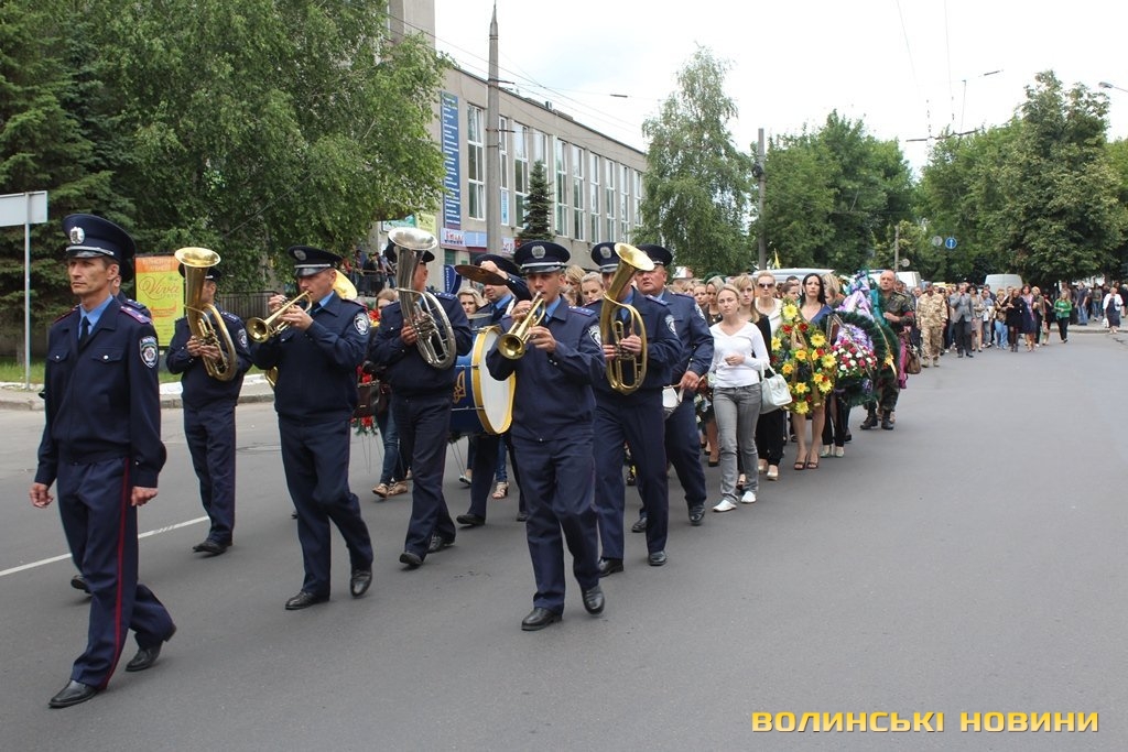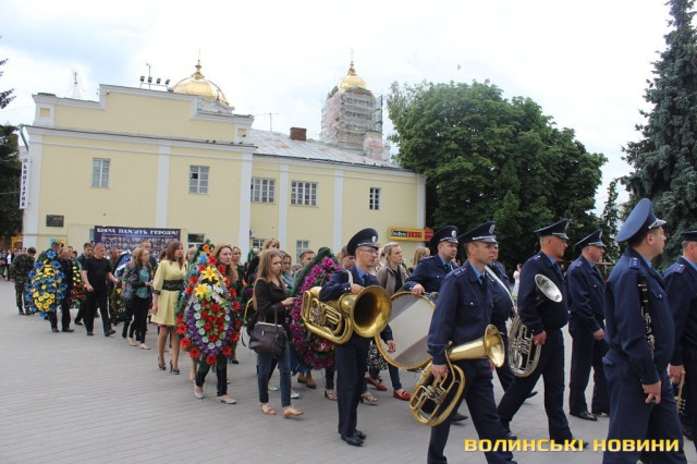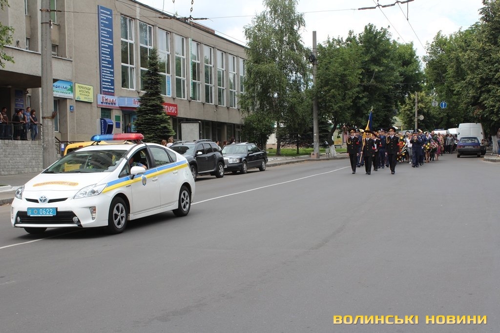 Траурна процесія рушила від Будинку панахиди до центральної площу міста, куди сотні лучан прийшли попрощатись зі своїм земляком.