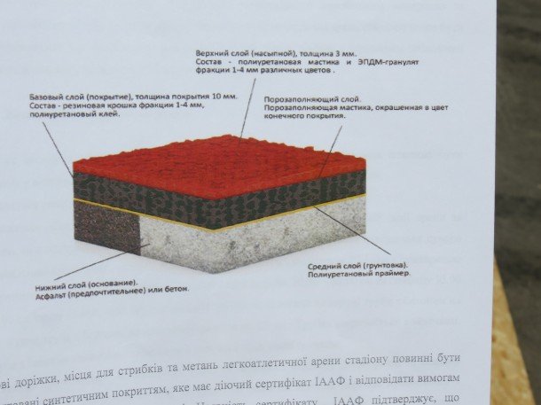 «Ми вибрали цю фірму, оскільки вона є світовим брендом покриттів для стадіонів, таке покриття, зокрема, має НСК «Олімпійський». Безпосередню укладку цього покриття буде здійснюва фірма «Теллен-груп», яка має у своєму досвіді близько 100 стадіонів різних категорій. Буквально у понеділок-вівторок ці матеріали будуть завезені на стадіон», - зауважив головний легкоатлет області.