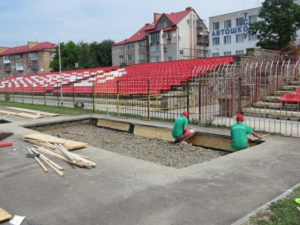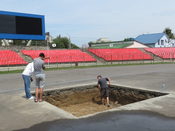 Зі слів Володимира Рудюка, підготовчі роботи завершаться вже за 7-10 днів, опісля чого спеціалісти розпочнуть безпосередньо покривати бігові доріжки.