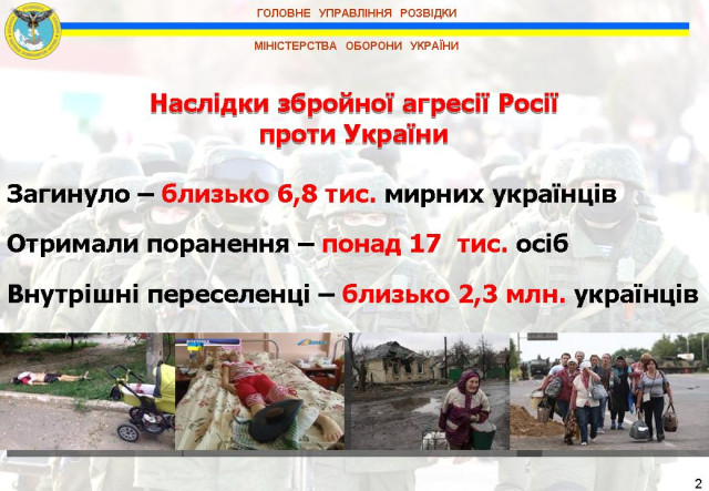У березні 2014 року Російська Федерація зосередила на кордоні з Україною таку кількість військ, яка дозволяла будувати плани про захоплення Півдня і Сходу нашої країни. А внаслідок російської агресії проти України загинули майже 7 тисяч громадян, дістали поранення 17 тисяч людей.