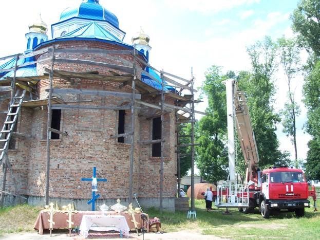 У Святомиколаївській церкві селища Колки та у храмі Святого Юрія села Новоукраїнка Маневицького району накупольні хрести допомогли встановлювати рятувальники.