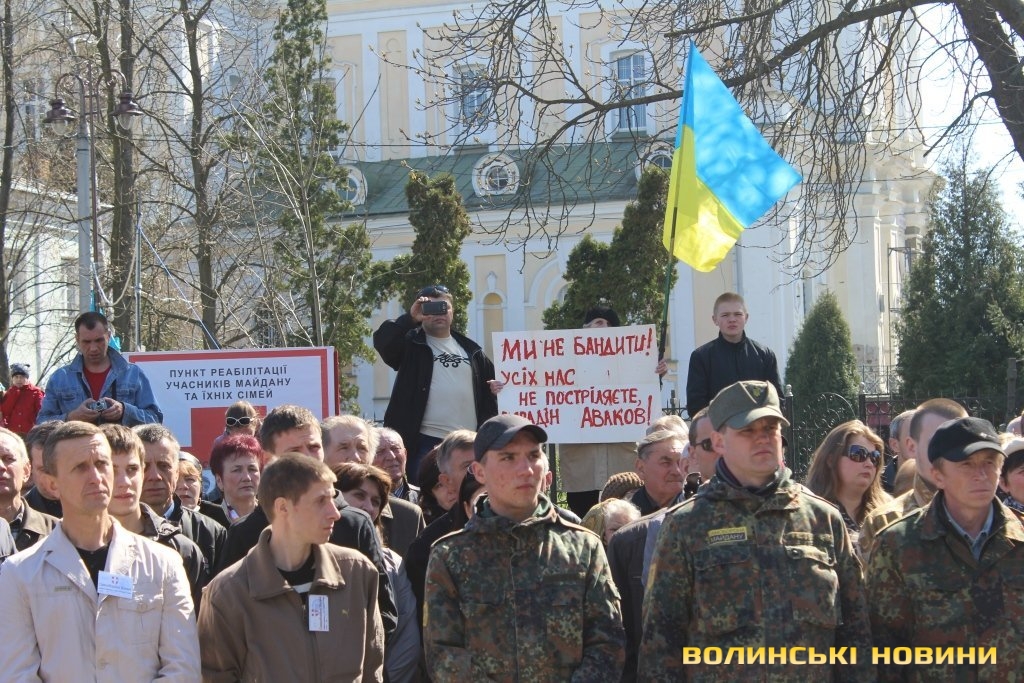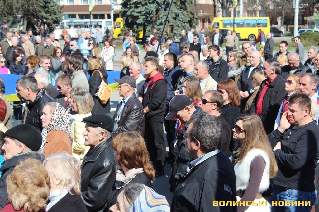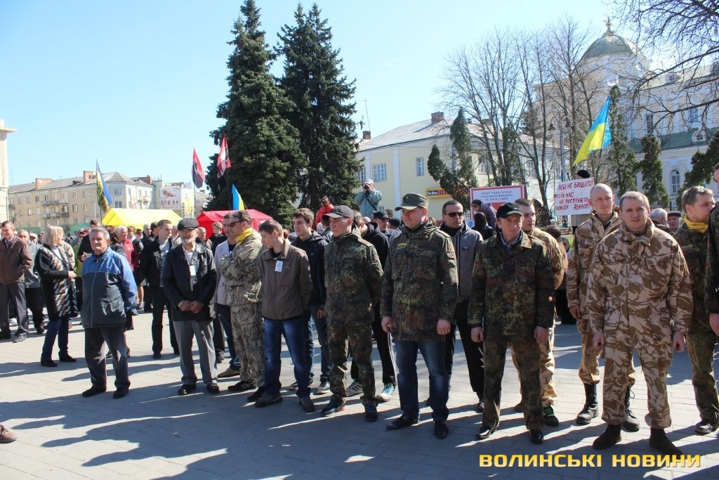 Під час віча, що відбулося 30 березня, керівник штабу Волинського представництва Самооборони Майдану Андрій Хведчак зазначив, що полковник Юлій Мамчур – людина, яка у військовій частині у Бельбеку показала, що таке гідність та честь.
