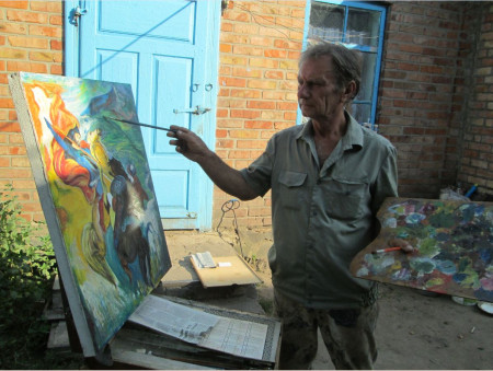 Поряд зі створенням історичних полотен вдома сільський митець часом має справу з відновленням зображень на іконах у церквах. Якось йому за дві доби довелося 12 образів реставрувати.
