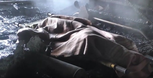 У мережі з'явилися перші фото і відео з тілом загиблого Гіві. Відеоролик на своєму каналі в Youtube розмістив "Life". На кадрах видно, що приміщення, де розташовувався штаб батальйону "Сомалі", вигоріло після вибуху.Місце смерті Гіві (скріншот відео)Тіло, імовірно, Гіві (скріншот відео)