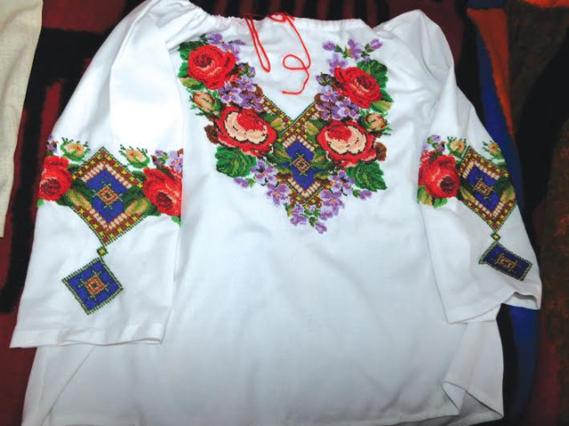Готуючись до фотографії, Артем з гордістю одягнув мамину вишиванку в червоно-чорних тонах та розповів, що такі веселково розшиті національні сорочки-обереги Інна Миколаївна повишивала і братам, і в дарунок племінникам. А пізніше жінка показала сукню з надзвичайно красивим квітковим візерунком, яку вишила для коханої дівчини старшого сина. Від квітучих ніжних лілій та блакитного барвінку годі було відвести погляд.
