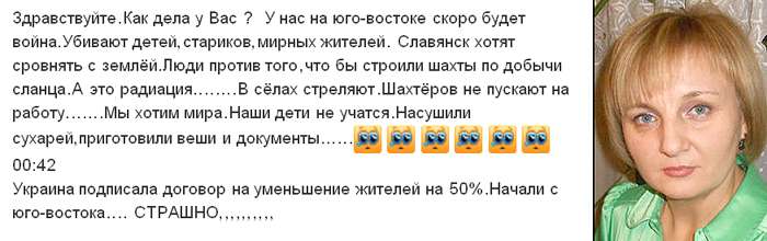 Від імені жителів донецьких міст мешканцям Заходу України в соціальних мережах приходять дивні листи, в яких „жителі”, приміром, Слов’янська, пишуть, що там „вбивають дітей, літніх людей та простих мирних жителів”.